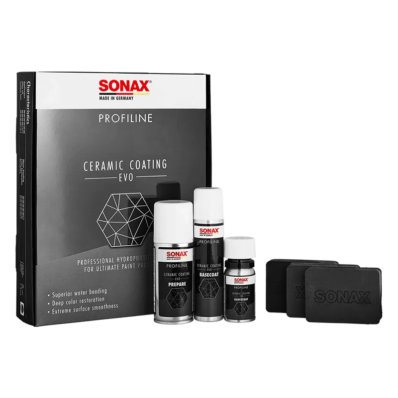 SONAX Ceramic Coating CC Evo از سری حرفهای PROFILINE برند آلمانی سوناکس است و برای ایجاد محافظت طولانیمدت روی رنگ بدنه خودرو طراحی شده است. این پوشش سرامیکی پس از اجرای صحیح، رنگ خودرو را زندهتر، عمیقتر و براقتر نشان میدهد و جلوهای تمیز، لوکس و حرفهای به بدنه میبخشد.